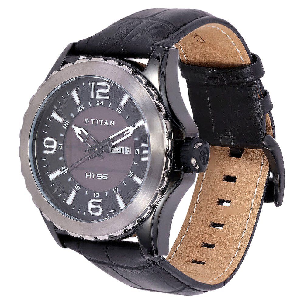 Titan HTSE Black Dial Solar Powered Leather Strap Watch for Men-NE1572KL02